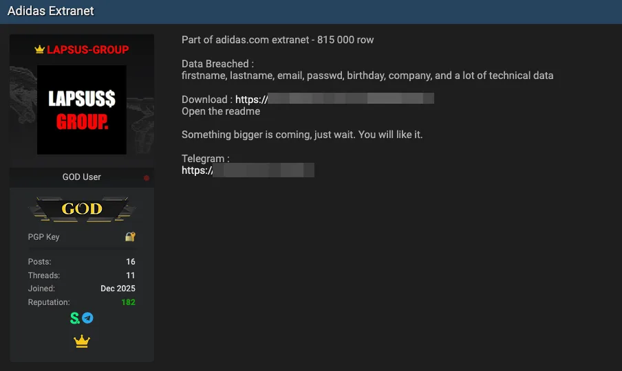 On February 16, the threat actor posted on a dark web forum, asserting they had exfiltrated approximately 815,000 records. The stolen files reportedly contain sensitive personally identifiable information (PII), including: