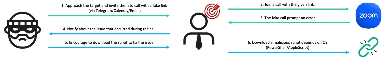 The GhostCall and GhostHire attacks utilize distinct but equally deceptive initial access methods. In the GhostCall campaign, attackers impersonate venture capitalists and engage targets in fake Zoom or Microsoft Teams meetings.