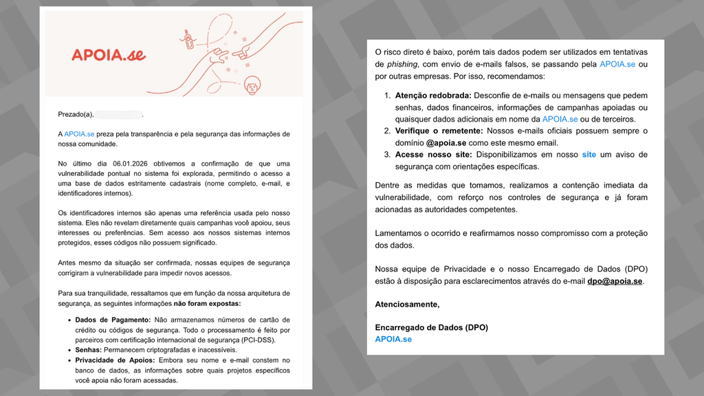The December 2025 APOIA.se data breach exposed a substantial dataset. Technical details of the breach and the number of affected individuals have not yet been disclosed. According to HIBP, the leak includes the platform's backers and creators: