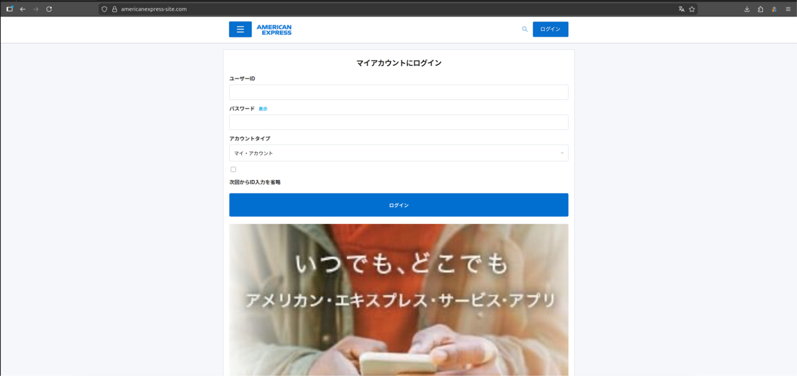 Following the actor catching on to the researchers’ activity, a new iteration was seen that featured a standard American Express credit card account login page without any download prompt. Yet, the HTML source included JavaScript that referenced several paths, including "/api/proxy/", "/aitm_capture", and others.