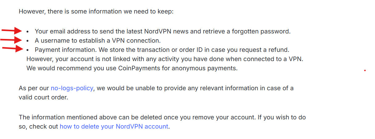 So, the verdict is simple and straightforward. NordVPN does not keep logs, except for certain anonymous data required to run the service. NordVPN’s no-logs policy clarifies that any stored data is not tied to any user, which means government agencies or hackers cannot misuse it.Â