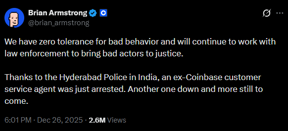 Coinbase CEO Brian Armstrong has indicated that one further detention is anticipated as the investigation proceeds.