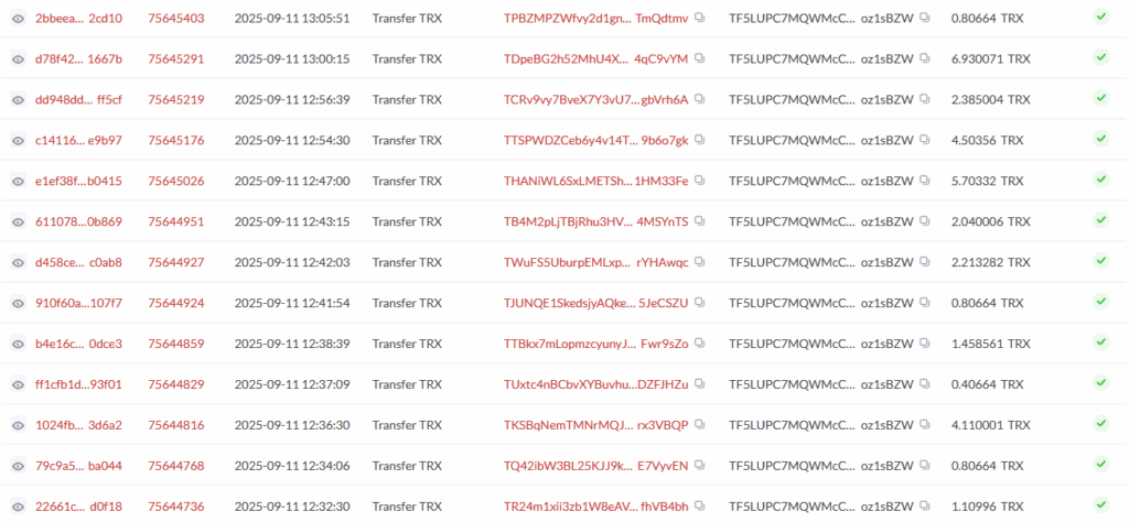 Token-sweep transactions to the operators’ wallet on TRON | Source: CPR