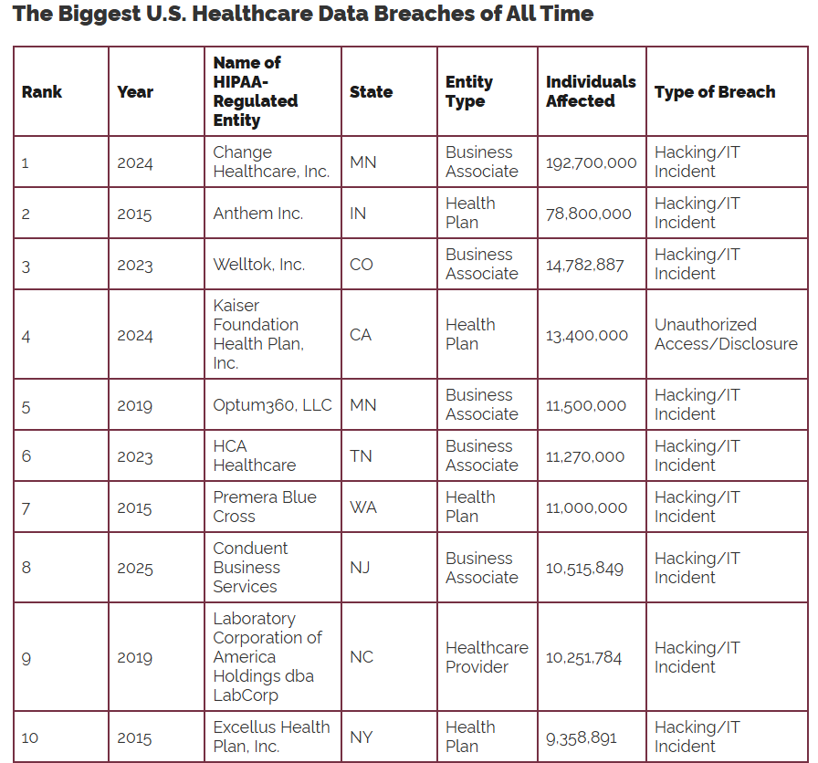 Among the 87 entries on the list are also found the 2025 DaVita breach and Blue Shield of California, as well as the 2024 HealthEquity intrusion.