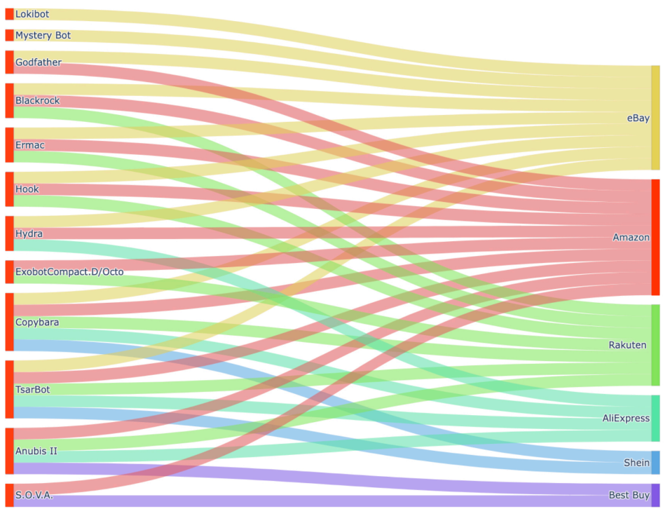 Analysis of prominent shopping apps revealed that many are targeted by malware families such as Copybara and TsarBot. Furthermore, the report uncovers significant mobile app vulnerabilities even in legitimate, top-ranked applications.