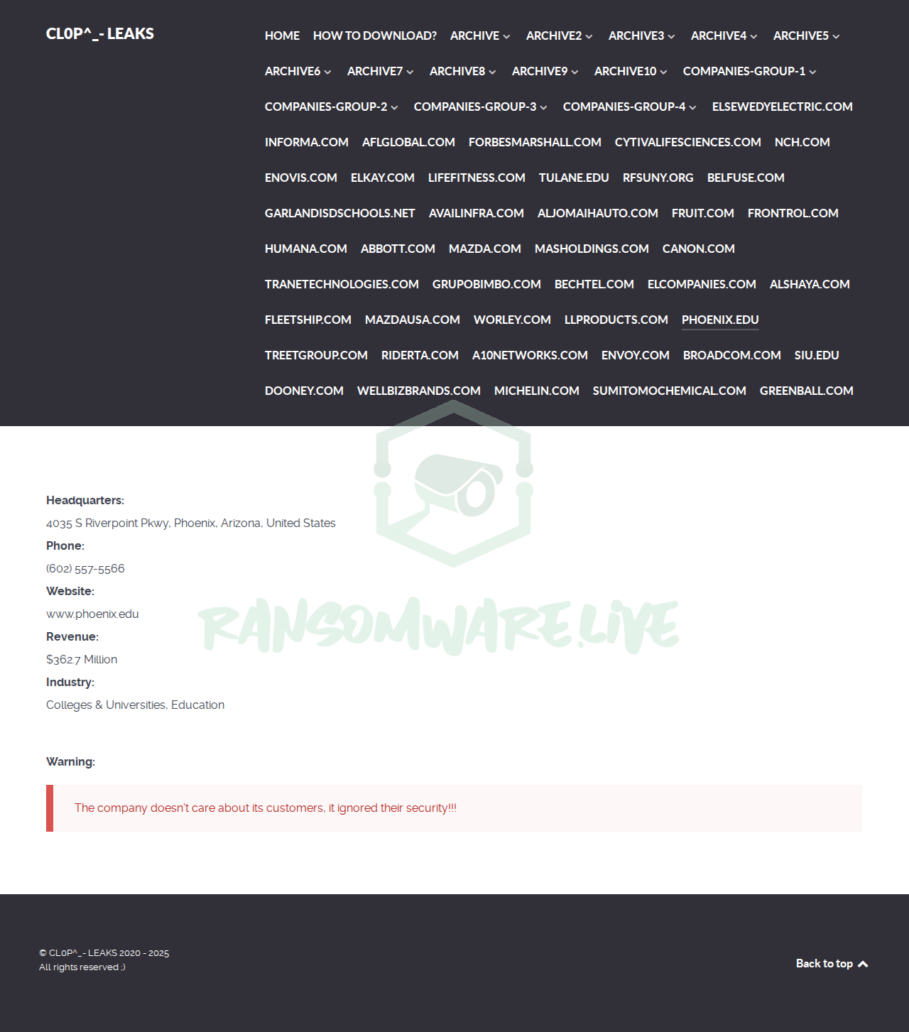This series of incidents highlights how threat actors have exploited vulnerabilities in widely used enterprise software and file-transfer services. The University of Phoenix data leak is one of the largest to result from this specific campaign, which has impacted over 100 organizations.