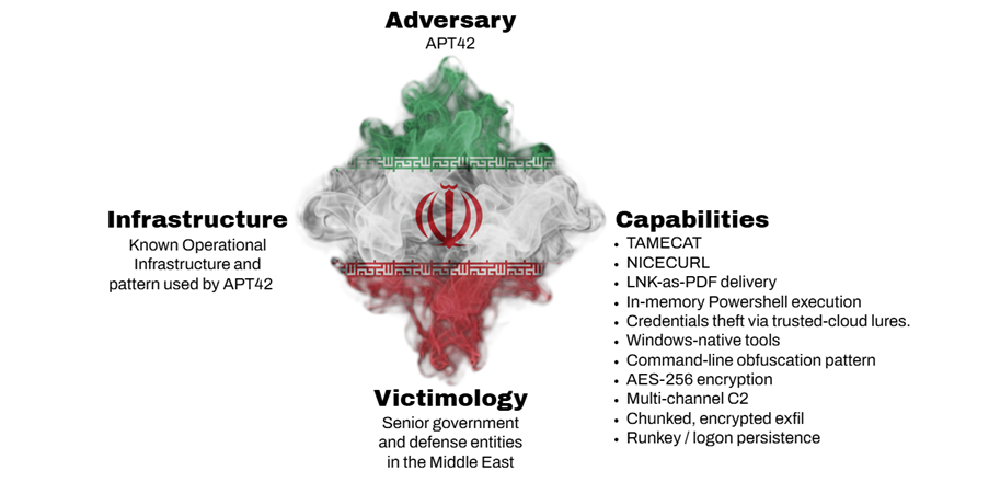 Once trust is established, victims are lured into executing malicious files. For long-term cyberespionage, the campaign deploys TAMECAT, a sophisticated PowerShell backdoor. Previously, APT42 was observed operating multiple infrastructure clusters in parallel, exploiting Google Sites fake logins, and distributing NICECURL and TAMECAT malware.