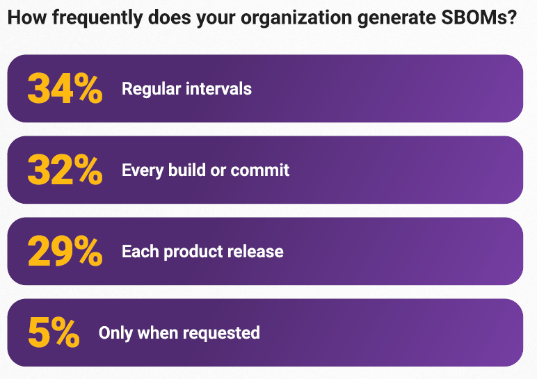Data indicates that organizations that consistently validate external SBOMs are better prepared, while those that do not are less prepared. Of the 51% of organizations (275) that always validate external suppliers’ SBOM: