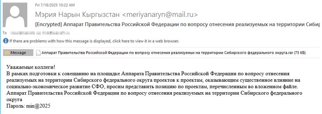 Example of a phishing email containing a malicious archive | Source: Kaspersky’s SecureList