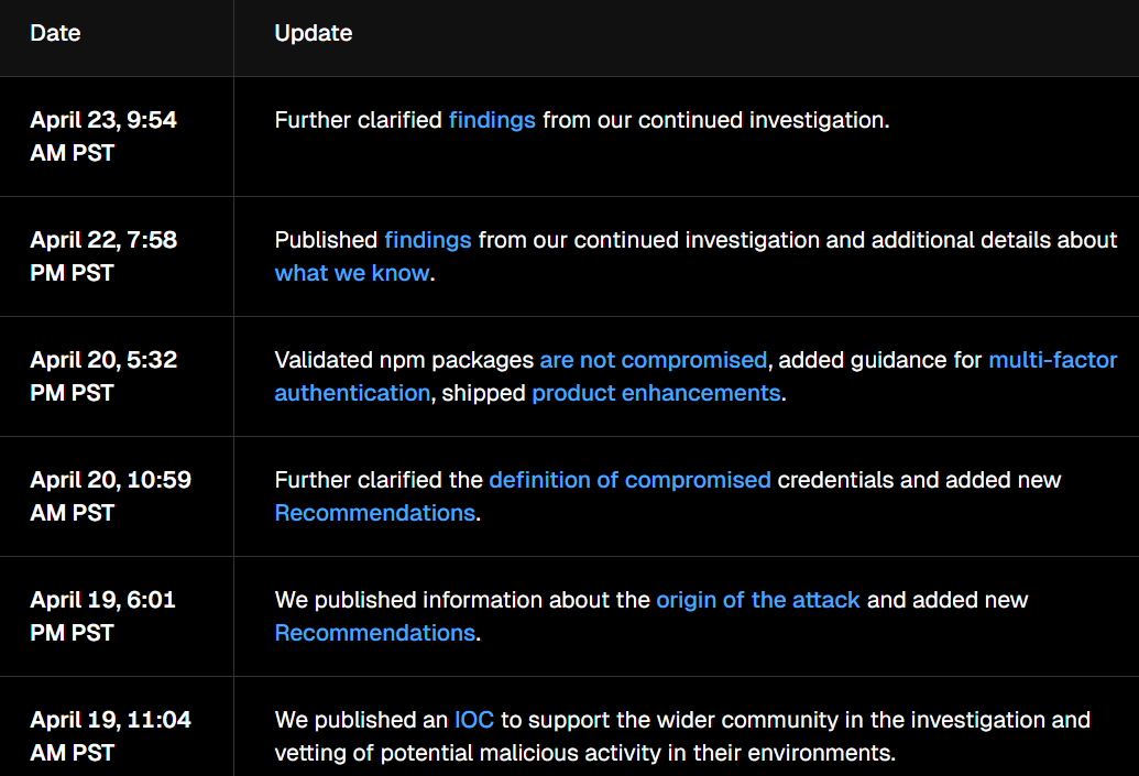 “Based on our investigation to date, these compromises do not appear to have originated on Vercel systems,” the recent Vercel update said.