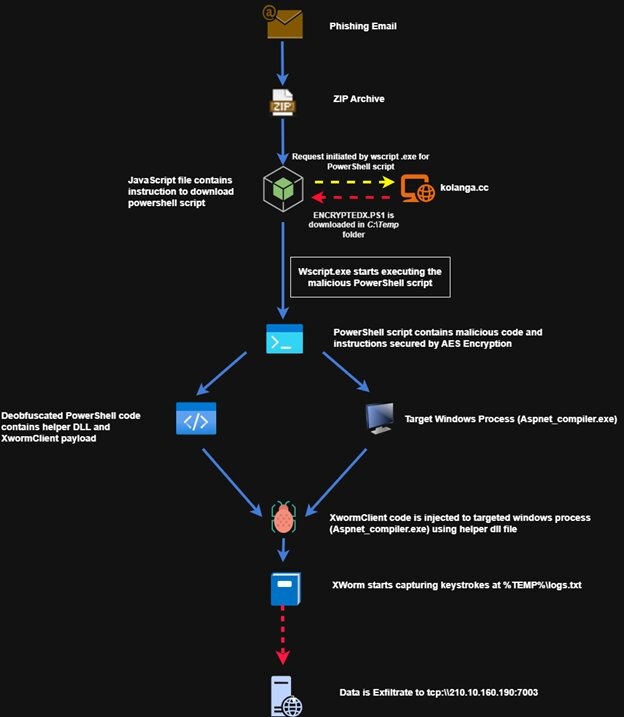 5. In-Memory execution: The script performs Reflective DLL Injection to insert the XWormClient Payload.